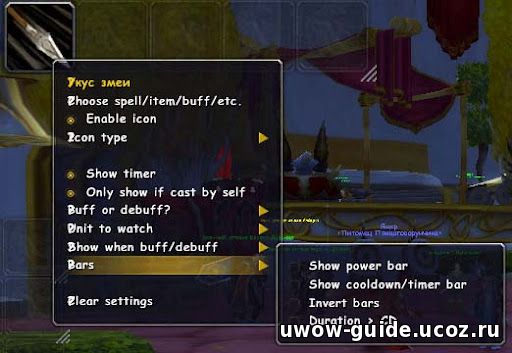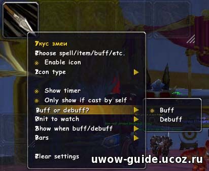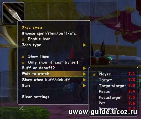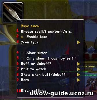 Для начала мы попробуем настроить отображение дебафа "Укуса змеи" на выбранном противнике.