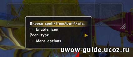 Разместив группу в потходящем и удобном месте, подогнав размер под наши нужды, жмем правой кнопкой по иконке в которой мы занесем наш первый дебаф. Появится всплывающее меню: