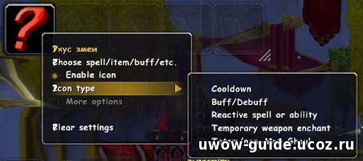 Теперь укажем тип иконки, и в третьей строчке выбираем пункт баф/дебаф